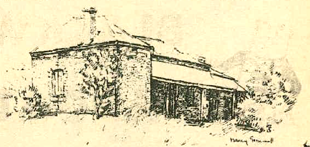 The family lived at Tapley's Hill. According to his newspaper story, John was educated at the Reverend Samuel Gill's School at Coromandel Valley (see photo below right) and later took charge of Myponga station under the supervision of his father. On the 28th September, 1854 by licence, at Christchurch, O'Halloran Hill, the Rev. R. Strong married John, fourth son of Mr. Thomas Tapley, Tapley's Hill, and Hannah, third daughter of the late Mr. James Sharpe, Sandy Bay, Hobart Town. Also, at the same time and place, the Rev. R. Strong, married James Morford, third son of Mr. Thomas Tapley, Tapley's Hill, and Mary, second daughter of the late Mr. James Sharpe, Sandy Bay, Hobart Town. The 'South Australian Register' of Sat, October 7, 1854, reveals that John Tapley married Hannah Sharpe in a double wedding ceremony- 2 Sharpe sisters marrying 2 Tapley brothers. The 2 sisters from Tasmania were probably visiting their brother George Sharpe, 25, a farmer of Tapleys Hill, who lived near the Tapleys and had married Elizabeth Tapley, aged 27 years, on 24 August 1848. Witnesses were Thos. Tapley, J. Tapley & M. A. Tapley. George and Elizabeth continued to live at Tapley's Hill for the next few years on their farm, where their first children were born. In 1863 John (and presumably his wife and family) moved to Wartaka station which is near Port Augusta. The property, when it was sold for £20,000 in 1920, after John Tapley's death, was described as: 197 square miles and includes a homestead of five rooms, kitchen, store, and schoolroom, two cellars, two cemented tanks, a woolshed of 15 stands, two cart sheds, men's hut and kitchens; and the country is subdivided into nine paddocks, and is watered by two wells and 13 dams.Apparently a conscientious farmer with frequent newspaper references to the sales of sheep and horses in the markets, John Tapley also must have kept a low profile with less participation in newsworthy events than his uncles. One article mentions in 1910 By the way, old John Tapley still keeps going, and, although getting on for 90, can read without glasses. Another article describes an accidental shooting when John Tapley drove the victim to hospital.
