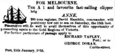 His story is told below, but equally interesting is that he and 2 sons emigrated separately on the clipper ship "Adelaide" now undergoing restoration at Port Adelaide.